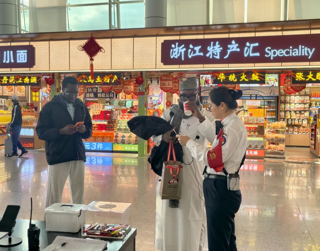 在候机大厅里,来自韩国的采购商金先生正翻看手机里的货品照片,他的登机箱里塞满了玩具样品;旁边,刚在义乌完成考察的南非小伙儿正用视频向家人展示刚买的中国年货。