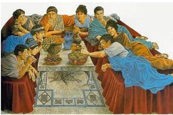 与食材日渐多样的变化相呼应,古罗马人吃饭的方式也随着时代的不同产生了变化。小普林尼在《书信集》中提到,坚持古代风习的人一天只进简单的晚餐。历史学家特奥多尔·蒙森在《罗马史》中指出,罗马人向来每日只进一次热食,而在征服地中海后情况发生了变化:如今在第二餐也摆设热食物的,屡见不鲜;往日一次主餐只有两道菜,现已不复足用。