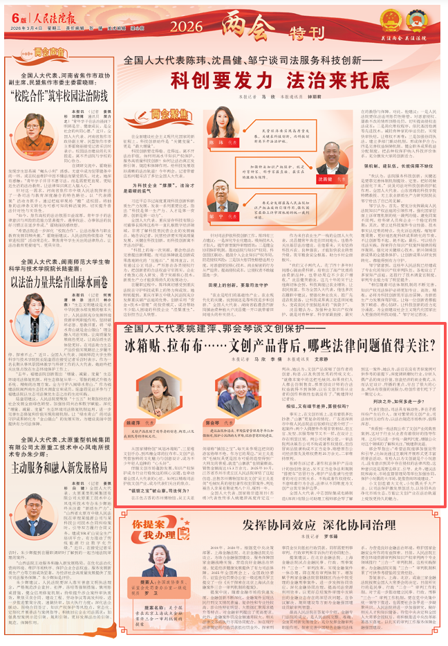 代表们指出,司法具有被动性,多在矛盾纠纷产生后介入。面对繁荣的文创产业,司法如何主动作为,以法治规范市场秩序,值得深思。