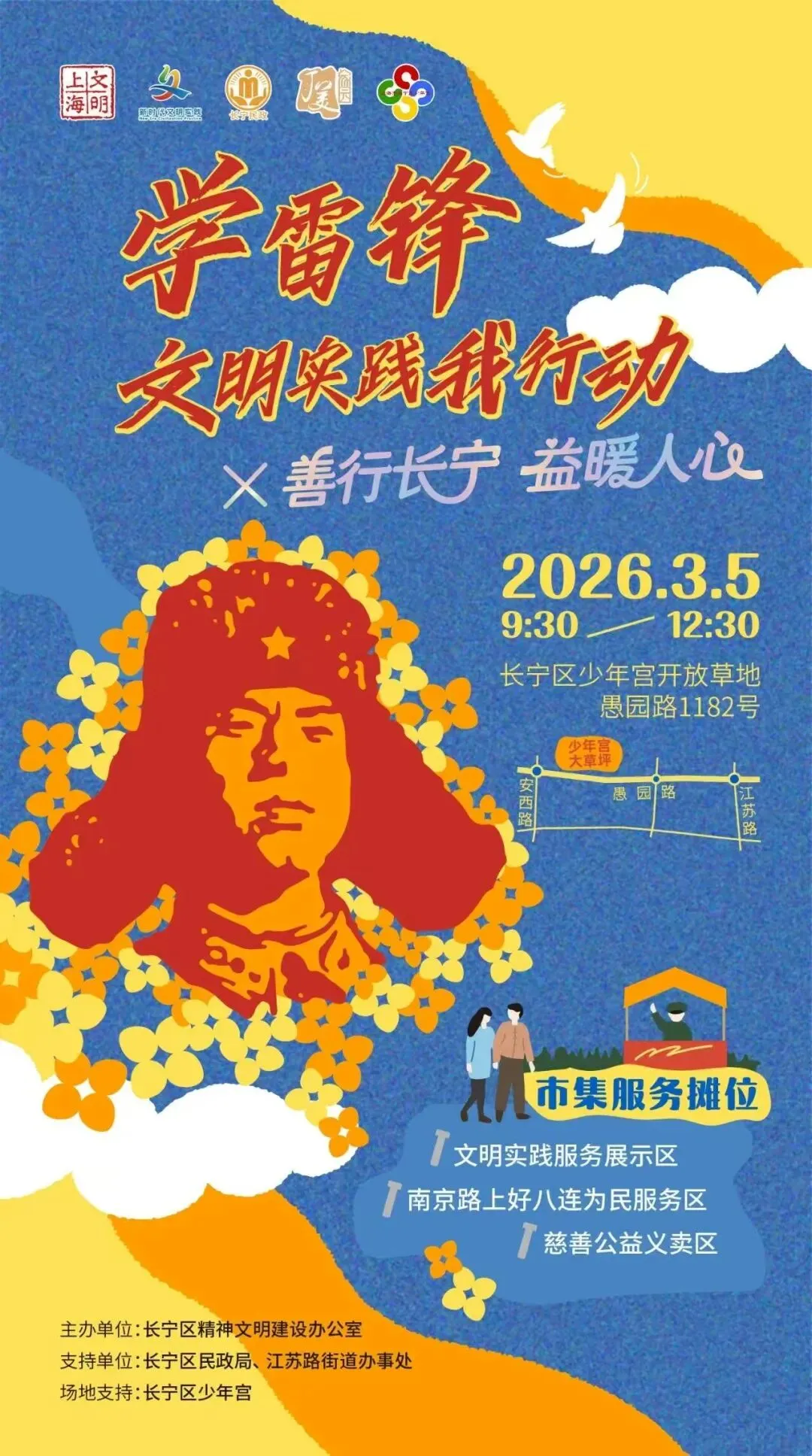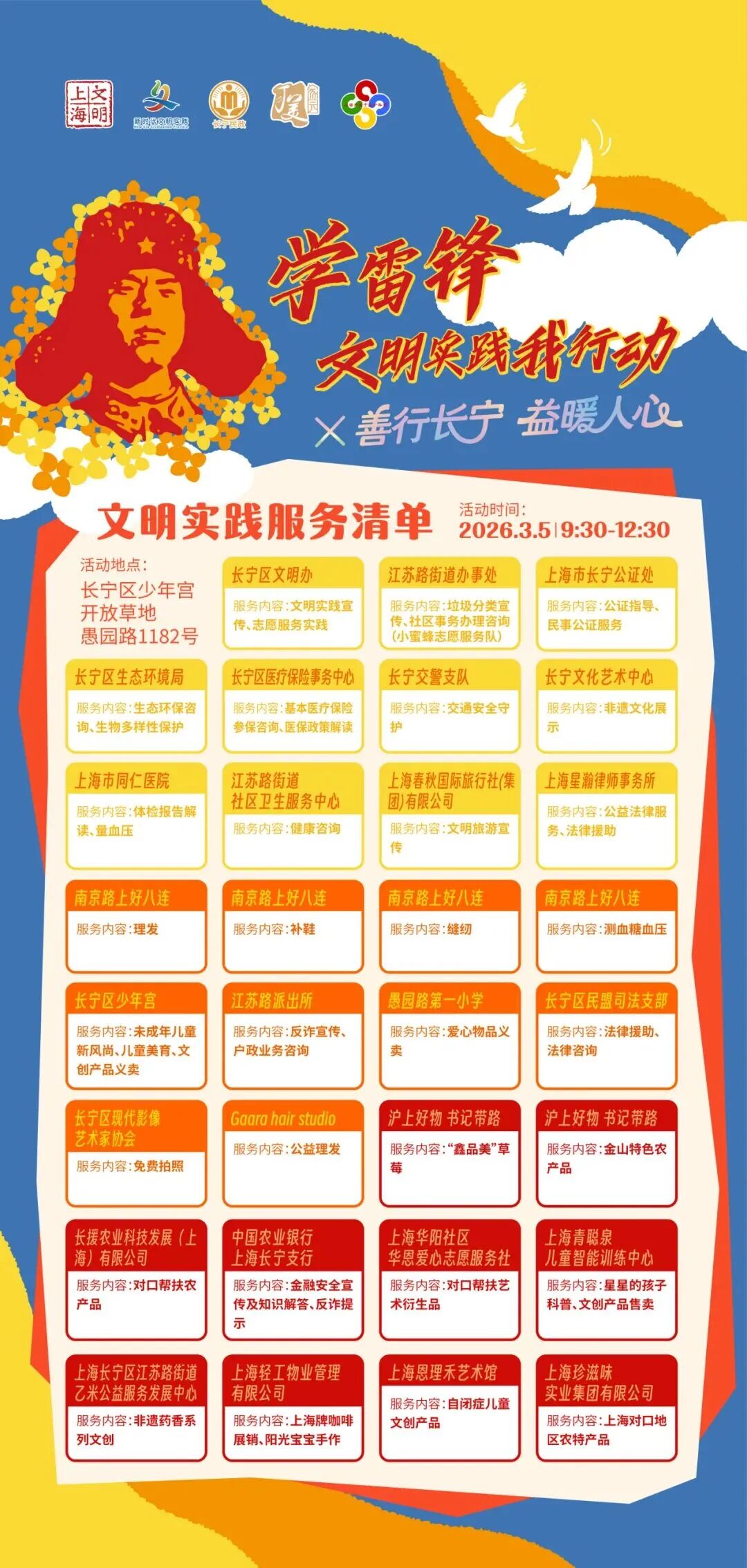 在第63个学雷锋纪念日到来之际,明天(3月5日)上午,区文明办将在区少年宫(愚园路1182号)举办“学雷锋·文明实践我行动”主题实践活动。三大暖心板块,期待广大市民前来体验!