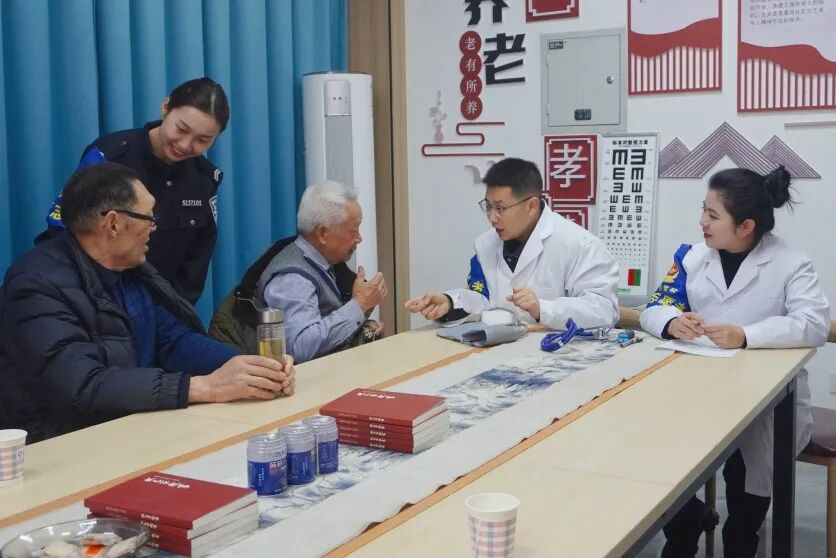 走出高墙,走进大街小巷,监狱民警化身“深蓝志愿者”,将温暖送到群众心坎上。在社区街巷里,成都女子监狱、广元监狱的民警们手持垃圾钳、垃圾袋,清理社区里的枯枝落叶、公共设施积尘及院落杂物,维护整洁家园;在敬老院里,川东监狱、眉州监狱、邛崃监狱志愿者民警陪老人唠家常、读报纸,还带去自编自演的小节目,用欢声笑语驱散了孤独;巴中监狱、川西监狱、绵阳监狱、川北监狱、成都未成年犯管教所医院民警深入周边社区开展义诊志愿服务活动,为群众提供健康咨询、查体与用药指导等服务,将专业医疗服务送到群众家门口;在周边社区和学校里,崇州监狱、攀西监狱、省女子监狱、雷马屏监狱、嘉陵监狱、德阳监狱、荞窝监狱、川中监狱、自贡监狱民警通过发放宣传资料、现场答疑解惑等形式,在多主题的普法宣传中,帮助群众和在校学生树牢法律意识和法治观念。