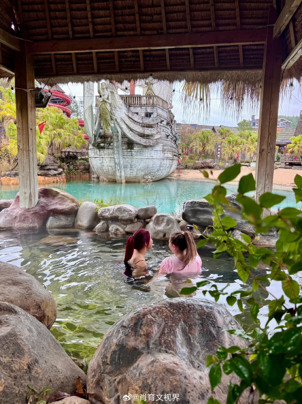 2月底,两位外国游客在清流县天芳悦潭温泉度假区泡温泉,这里的锗温泉是全球唯二、国内唯一可直接饮用的温泉水。网络博主@肖育文视界 图