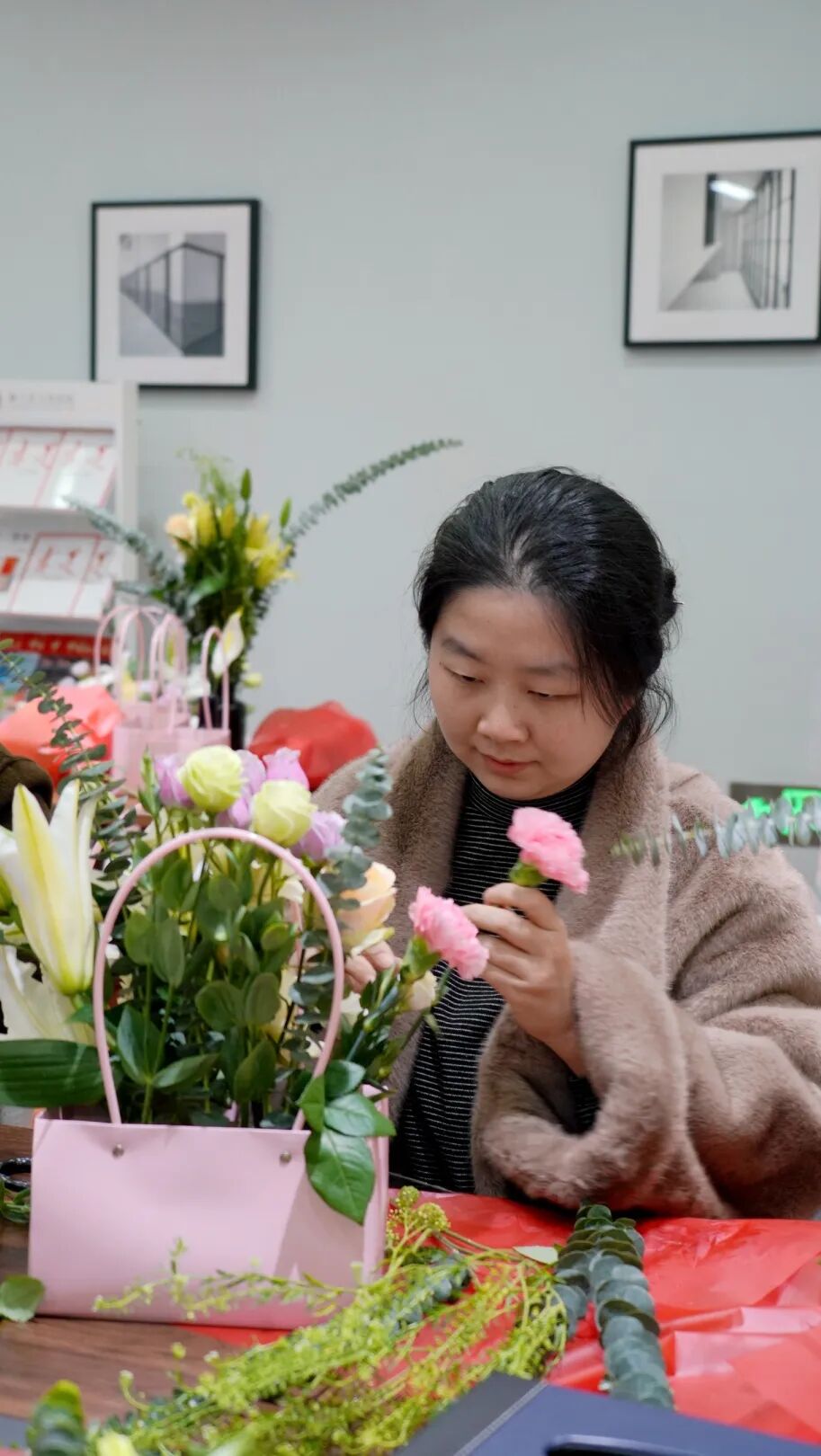 活动现场花香馥郁、氛围温馨。在花艺老师的专业指导下,女干警们认真学习花材识别、色彩搭配、层次构图与修剪造型技巧,将各类花材精心搭配、巧手塑形,在枝叶间勾勒美学、在芬芳中舒展心情。大家相互交流、彼此欣赏,在创作中感受花艺之美,在互动中增进同事情谊,一件件错落有致、清新雅致的插花作品次第呈现,尽显法院女性刚柔并济、优雅向上的精神风貌。