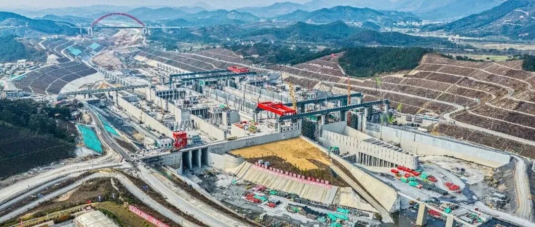 在马道枢纽一号观测台远眺,世界级内河省水船闸的“骨架”巍然矗立,双线5000吨级船闸“劈”开山峦。