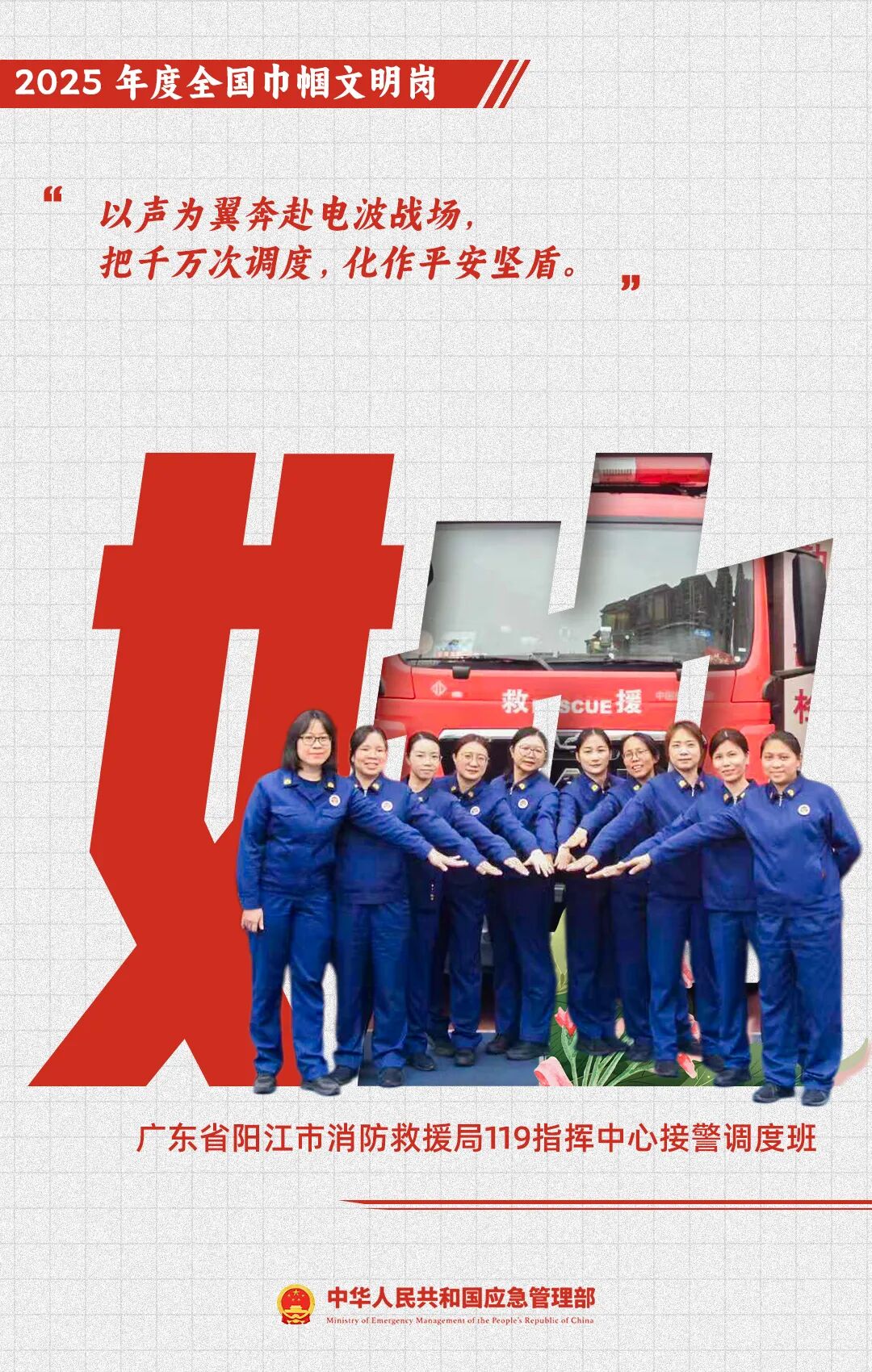 广东省阳江市消防救援局119指挥中心接警调度班获评“2025年度全国巾帼文明岗”称号。她们365天24小时坚守电波一线,以专业练就“活地图”,秒级反应、精准调度。2025年,她们接处警6900余起,调度力量9万余人次,重大警情零延误、零失误,建立特殊群体数据库,一键优先响应。没有火场一线的冲锋陷阵,却始终在幕后默默坚守,阳江消防的巾帼接警员们,用专业筑牢防线,用温柔化解慌乱,用坚守诠释担当。