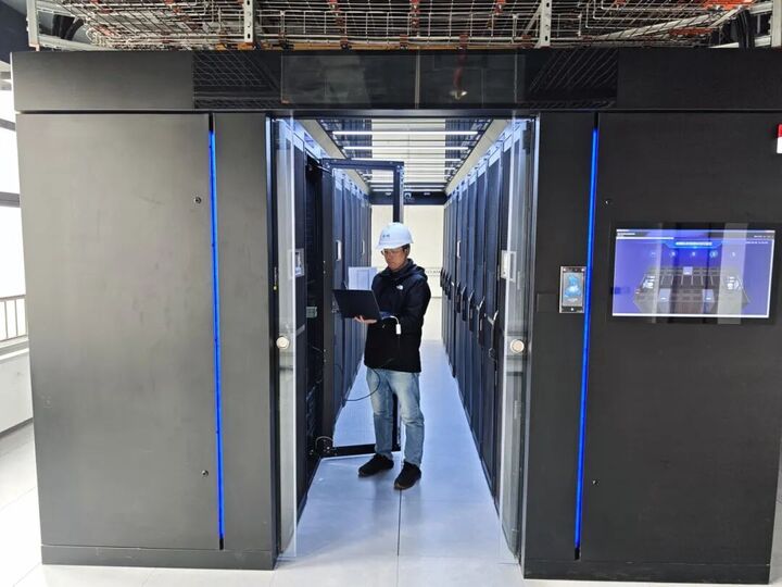 ▲宁马线S2滨江控制中心云平台微模块机房现场设备调试