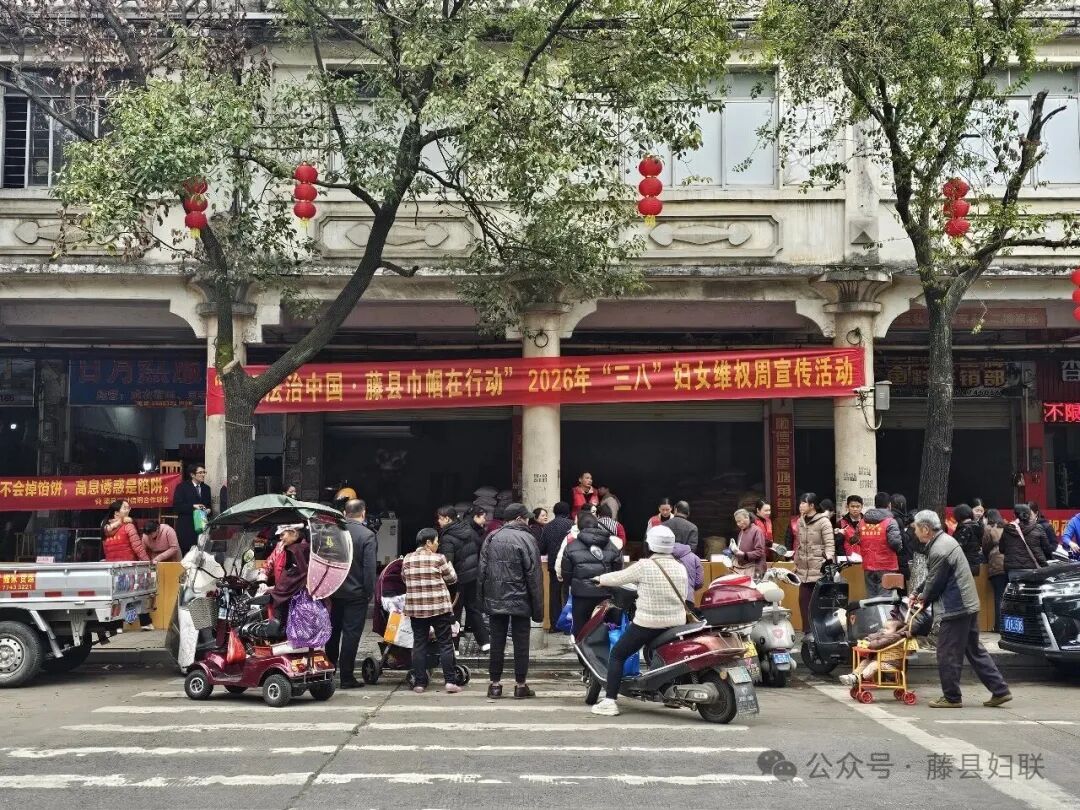法治护航,筑牢巾帼权益屏障。3月5日上午,“建设法治中国·藤县巾帼在行动”2026年“三八”妇女维权周集中宣传活动在藤县河西防洪堤(水利局对面)举行。县政府妇女儿童和残疾人工作委员会部分成员单位联合发力,向过往妇女群众普及妇女儿童维权相关法律法规,重点讲解婚姻家庭、劳动就业等领域的法律知识,切实提高妇女群众的法律素养和自我维权意识,营造全社会关心支持妇女维权工作的良好氛围。