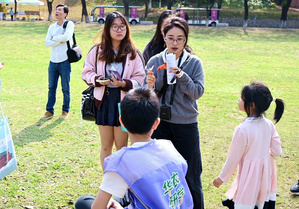 华农研学项目负责人介绍,依托优越的校园环境、完善的文化设施和雄厚的学科力量,华农推出官方研学品牌“小农宝”,由校办企业规范化运营,聚焦青少年科普教育,设置农耕文明、自然科学、文化历史三大课程体系。既有专业场馆教学、实验室实操,也有户外生态观测、校园文化体验,昆虫观察、压花制作、茶学体验等特色课程受到欢迎。自2025年6月运营以来,已开展研学活动20余场次,服务青少年超2000人次,“欢迎大家关注‘华农大研学’公众号,这是我们官方的报名咨询渠道,也会发布最新课程资讯。”
