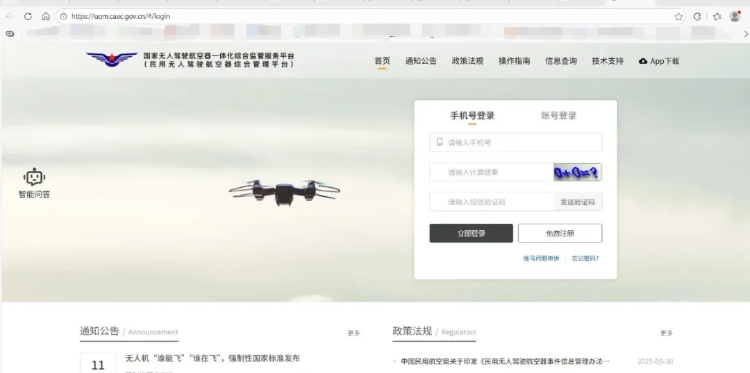 通过UOM官网(https://uom.caac.gov.cn/#/login)