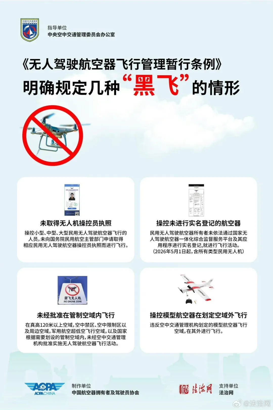 2025年12月以来,公安部在全国范围内部署开展严厉打击超高“黑飞”违法犯罪“净空”专项工作,全力消除安全隐患,严厉惩处“黑飞”行为,坚决守住低空安全底线,着力护航低空经济高质量发展。