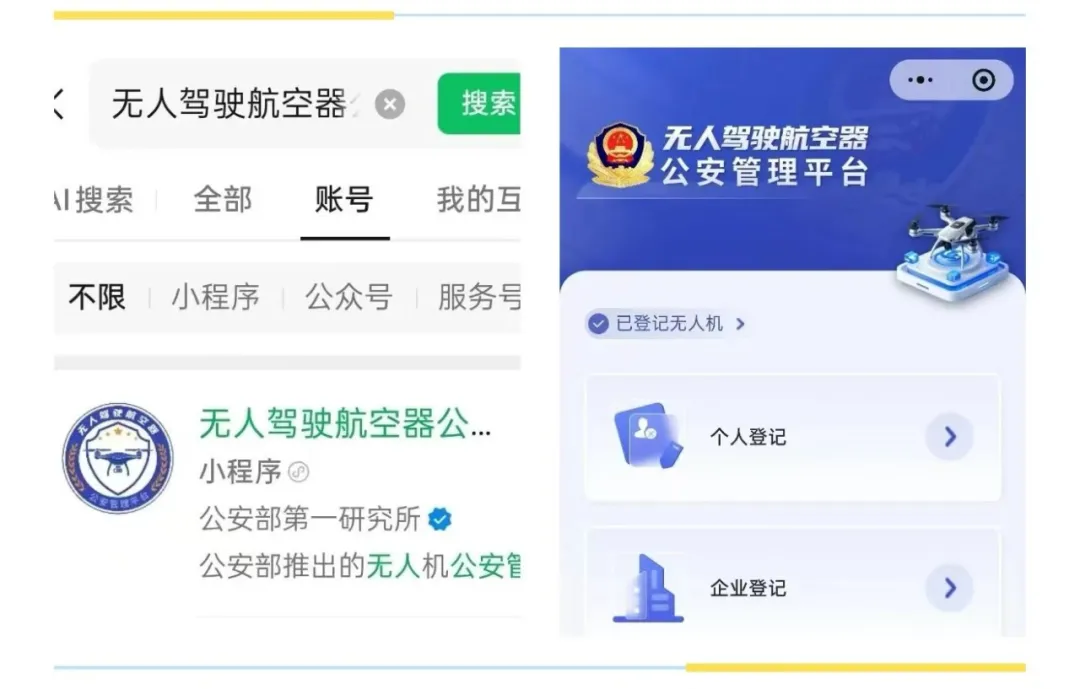 3、无人机持有人实名登记后需于7日内到户籍地或居住地(单位所在地)派出所进行备案登记,或通过微信小程序“无人驾驶航空器公安管理平台”进行备案登记。