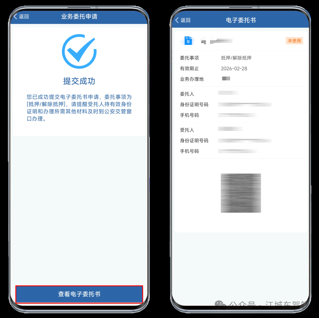 确认业务委托信息,点击【提交】,提交成功,点击【查看电子委托书】即可。