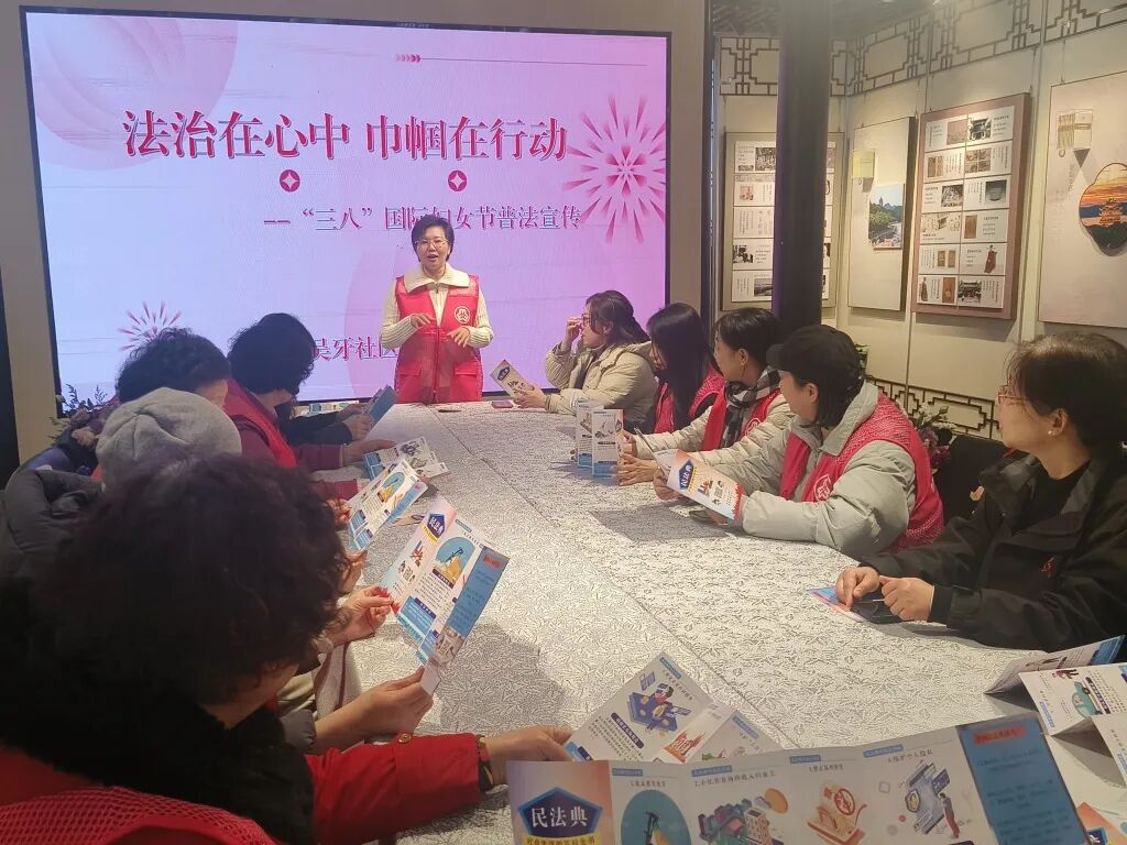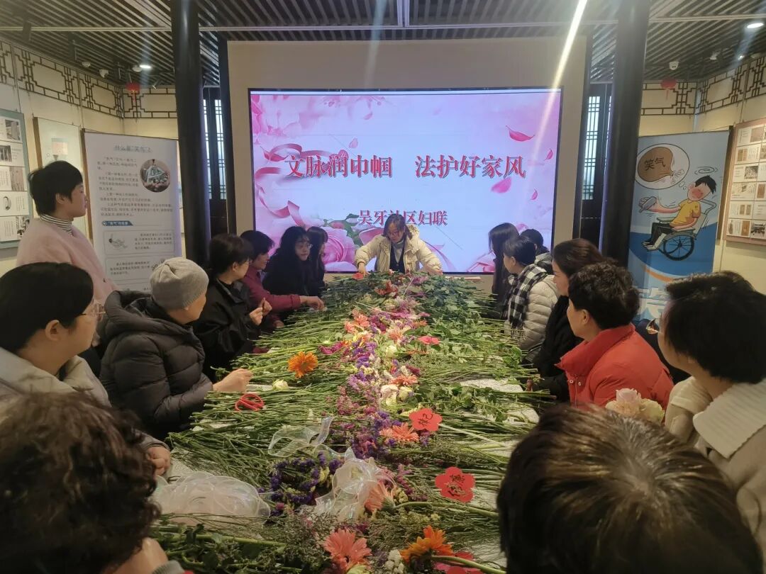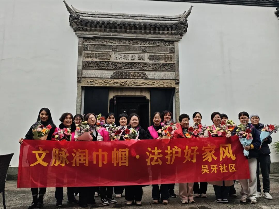 吴牙社区妇联开展 “文脉润巾帼・法护好家风” 主题活动。20 余名社区女社工、女党员及妇女骨干走进杭州市文史研究馆,感悟历史文脉,接受文化熏陶。活动特邀社区律师李婷开展法治座谈,围绕妇女权益保障以案释法,增强大家法治意识与维权能力。活动还设置了插花环节,参与者分享家风家训,以小家清风涵养社区正气。此次活动融合文化浸润、法治宣传与家风建设,凝聚巾帼力量,共建清廉社区。