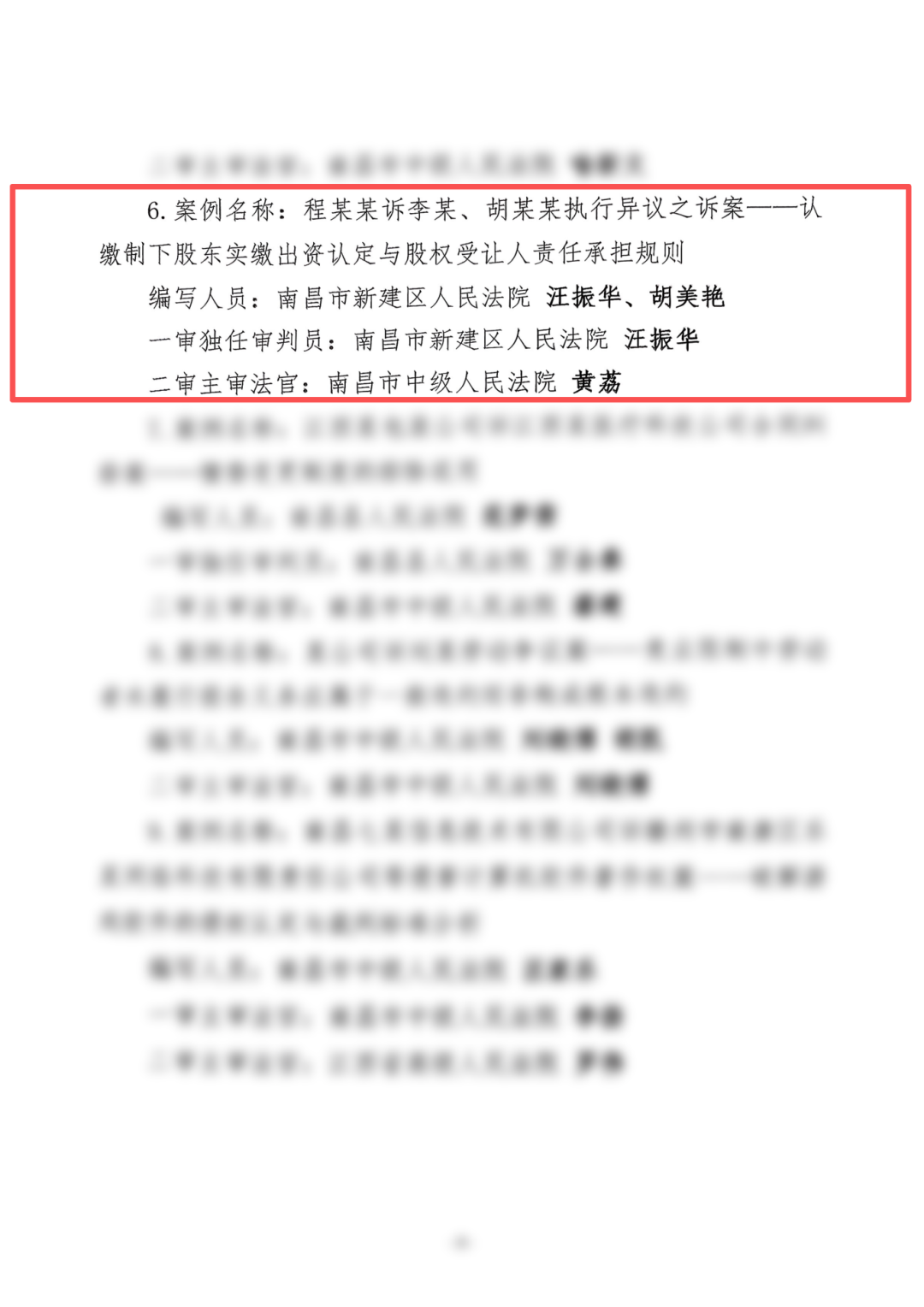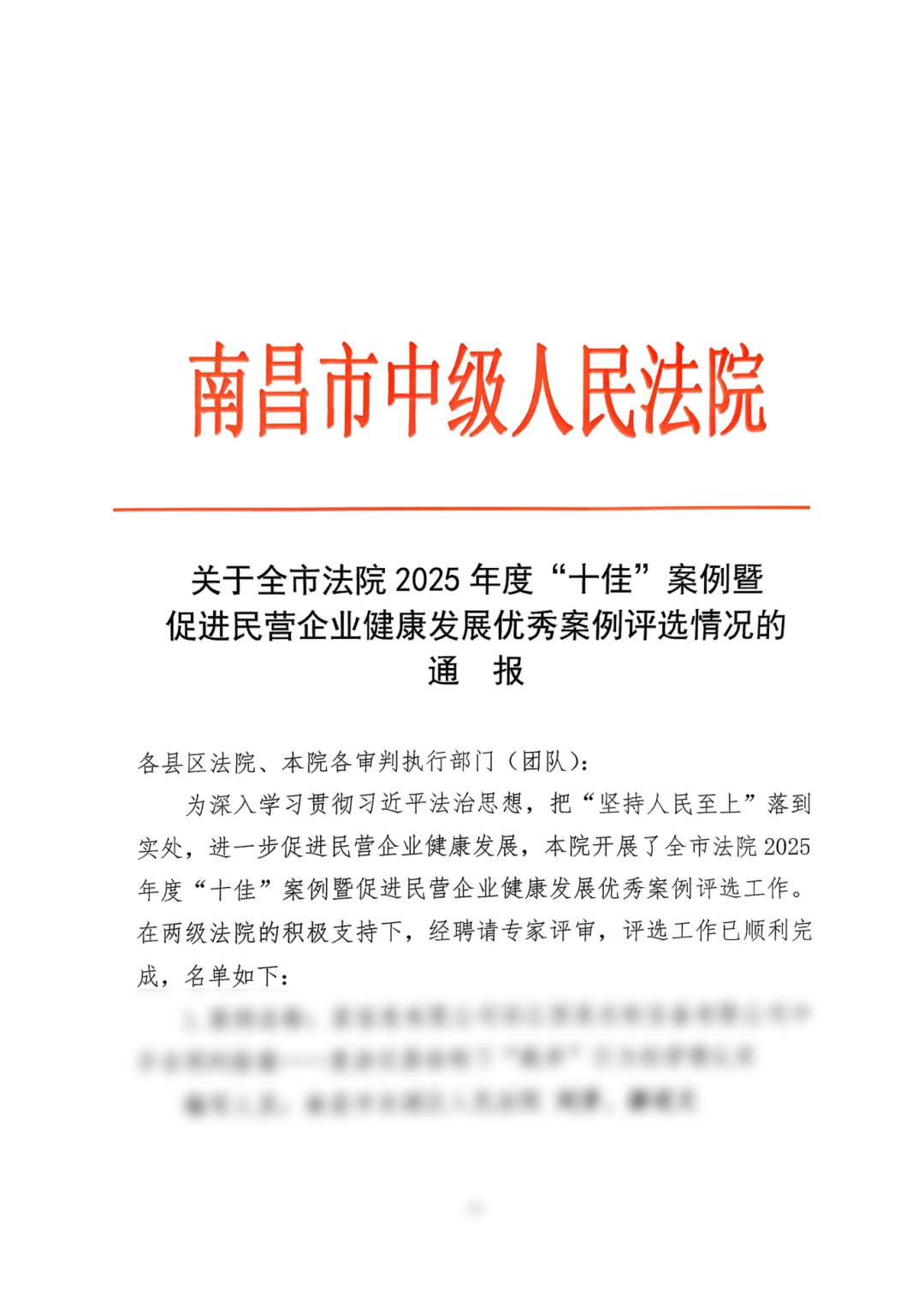 近日,南昌市中级人民法院发布《关于全市法院2025年度“十佳”案例暨促进民营企业健康发展优秀案例评选情况的通报》。其中,新建区法院报送案例《程某某诉李某、胡某某执行异议之诉案——认缴制下股东实缴出资认定与股权受让人责任承担规则》成功入选。