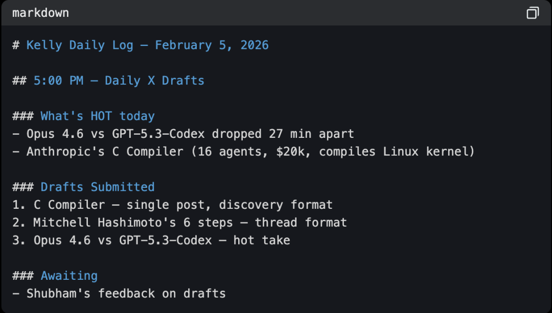 对Dwight而言,其第一天的工作重点抓取热点内容,到第10天就变成“如果Alex今天没法用它做任何事,就跳过”。Alex是Saboo为智能体设定的目标读者。到第20天,Dwight又加入了核查步骤,包括检查仓库创建时间、查看Show HN时间戳、追溯社交平台信息的原始来源。