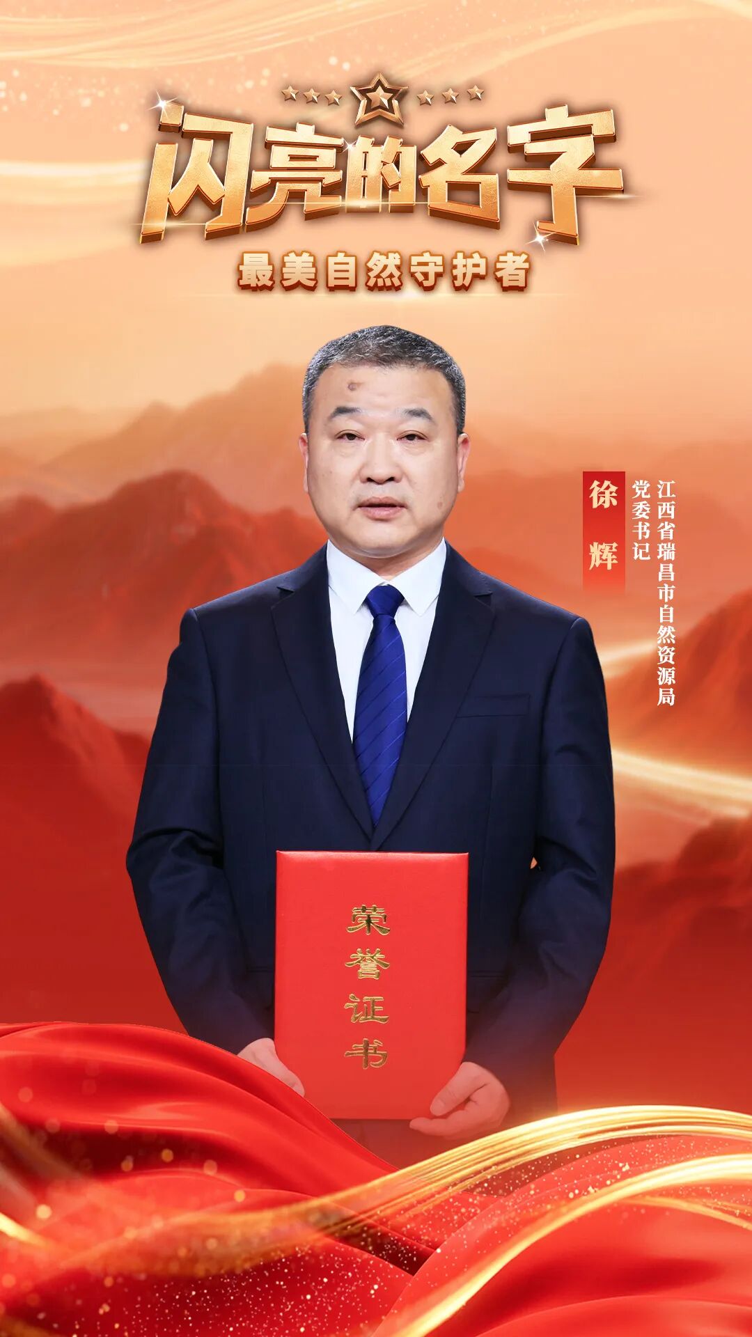 徐辉,男,汉族,1974年1月生,中共党员,江西省瑞昌市自然资源局党委书记。他忠实践行 “共抓大保护、不搞大开发”理念,聚焦长江经济带生态修复,推动瑞昌市在全省首个全面完成废弃露天矿山修复任务,基本实现绿色矿山全覆盖。他身残志坚,敢于担当,因公负伤致残后,依靠假肢坚持走遍全市矿山,在矿产整治中面对威逼利诱毫不动摇,坚决关停数十个“小散乱污”矿井,在江西率先推行 “净矿”出让,探索构建矿山资源开发“征—储—净—供—管”全链条体系,有关做法被自然资源部在全国推广。曾获江西省新时代赣鄱先锋等荣誉。