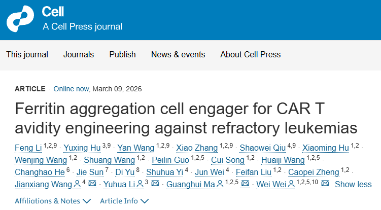 Cell | 魏炜/马光辉/李玉华/王建祥团队开发“铁蛋白双面胶”,显著增强CAR-T治疗效果,破解耐药难题