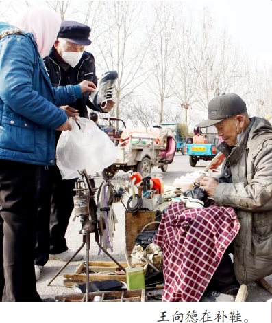上世纪九十年代,随着经济的发展和人们生活水平的提高,皮鞋逐渐走进了千家万户。但那时候的皮鞋质量参差不齐,鞋跟多是皮革包木头,容易磨损。很多人买了新鞋第一件事就是请修鞋匠给鞋底钉一层牛筋板掌或者铁掌,穿上走路“蹬蹬”响,既时尚又耐用。那时,大集上的修鞋匠十分受欢迎,有的集市还专门规划了修鞋区域,那场景,修鞋摊位一字排开,简直是一道独特的风景线。王向德也在这股潮流中忙碌着,他的手艺得到了更多人的认可和赞赏。