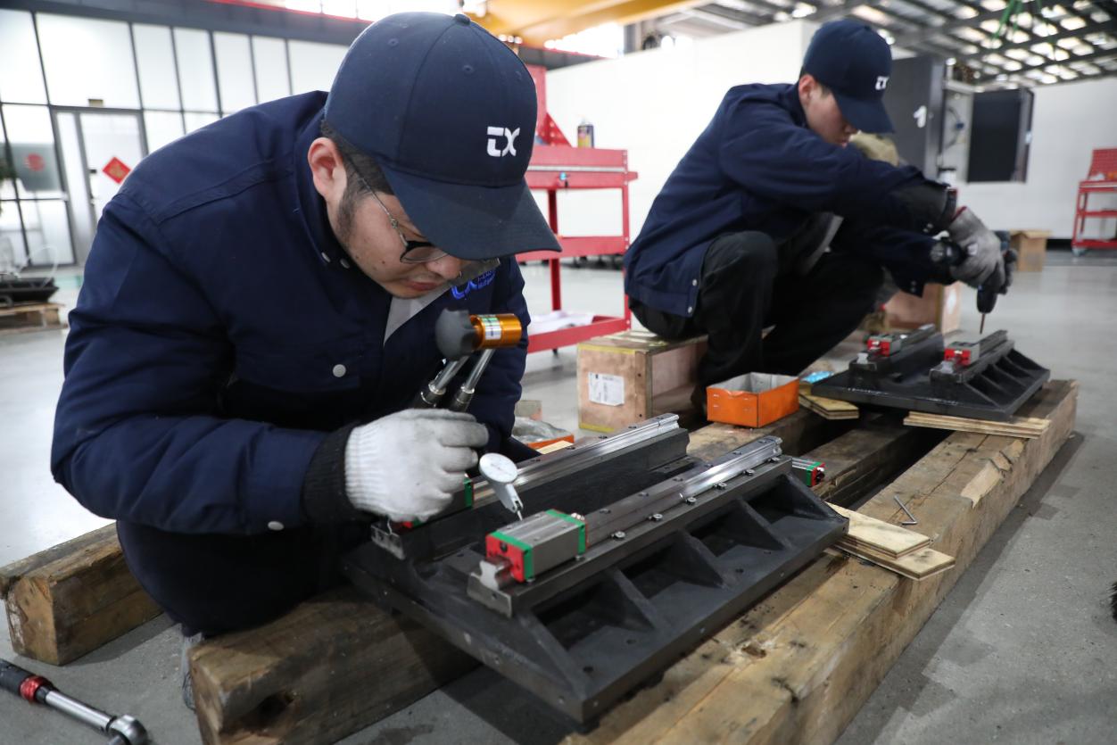 调试设备导轨。王文帮 摄