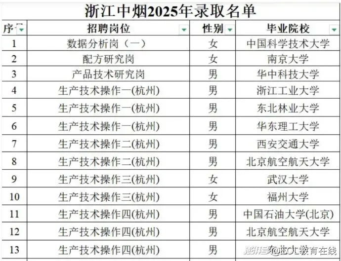 实际上,这并非个例。近年来,类似生产一线的工人岗位招聘中,已屡现硕士生。浙江中烟2025年校招96人中,超半数是985、211及境外高校毕业生,其中不乏生产一线技术岗位。