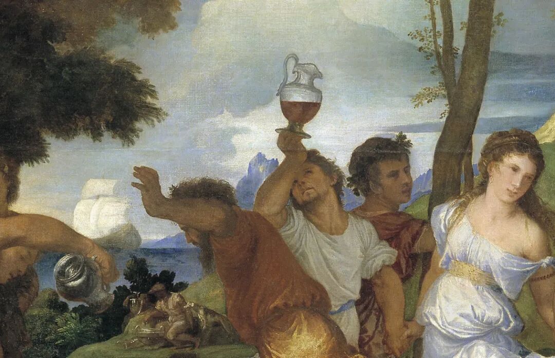 人的一生正如酒神的一样,既沉迷感官刺激带来的快感、又饱受生命活力下降与死亡的折磨,复活与重生,桎梏与解放,酒神是艺术家们表达人类复杂情感的绝佳载体。威尼斯画派提香在 16 世纪初期以巴库斯为题,创作了这幅《酒神祭》。