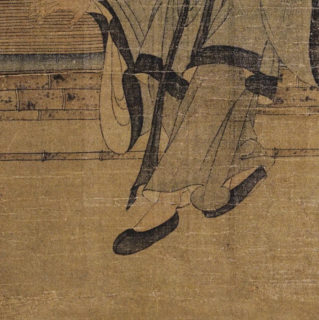 值得玩味的是,韩熙载无论衣着如何清凉,都一直戴着那顶黑漆漆的高帽子——“韩君轻格”(北宋人陶谷在《清异录》提到韩熙载自制轻纱帽,人称“韩君轻格”)不落亦不能歪斜。如果说钱选用宋画遗风显露自己不愿为元出仕的气节,韩熙载的这顶高帽子是他庇护士人尊严、提醒他在笙歌鼎沸中保持理智的信号。