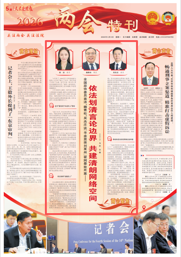 媒体聚焦丨人民法院报:全国政协委员苗洁、魏青松、吴杰庄谈“寻亲男孩刘某州”被网暴致死案——依法划清言论边界 共建清朗网络空间