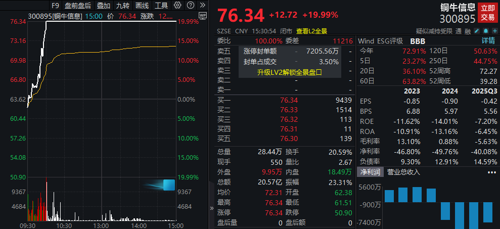尽管大盘整体调整,算力租赁概念却逆势活跃,成为市场中少有的亮点。其中,铜牛信息拿下“20CM”涨停,刷新股价历史新高;莲花控股、美利云同样也在上午即封死涨停。