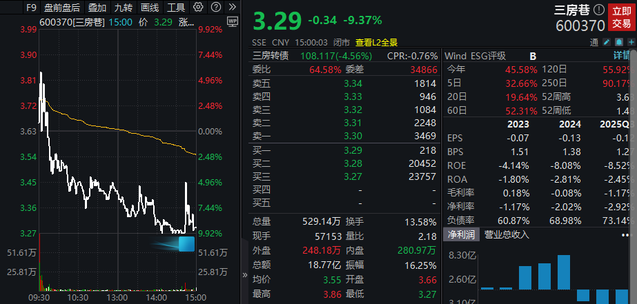 此前收获“五连板”的三房巷,今日未能延续连板走势,盘中多次触及跌停,收盘逼近跌停价位。