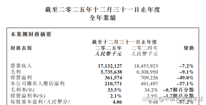 此外,公司现金流状况也释放出一定信号。虽然财报提到集团财务状况维持稳健状态,但在2025年末,其银行结余及现金为18.22亿元,同比下降32.6%,现金储备出现缩水。现金流的快速收紧,或将削弱企业应对市场波动、投入转型布局的能力,而在渠道优化需要持续投入的情况下,其经营韧性面临考验。