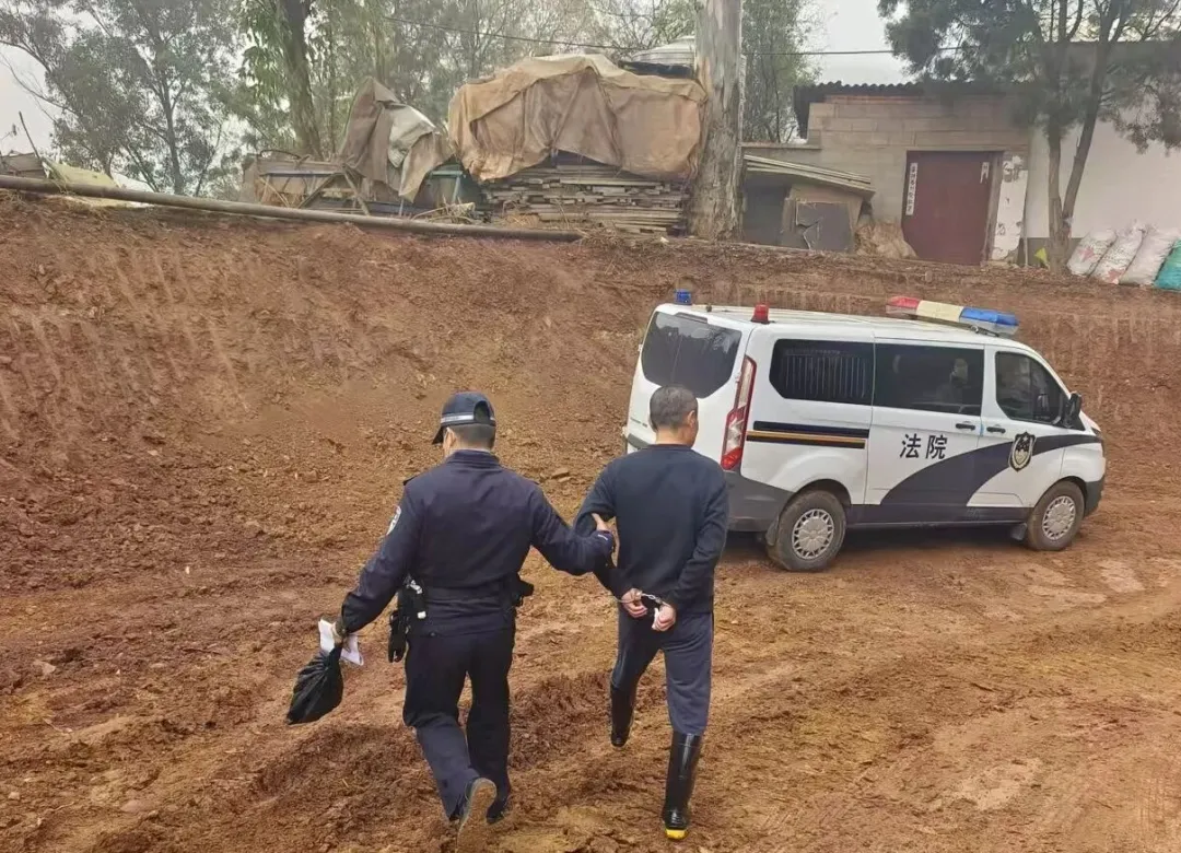 3月17日下午,庭审临近休庭时,突发暴雨,原定还押路线因市政施工导致路面严重泥泞湿滑。囚车驶入施工路段后连续发生侧滑,继续行车存在重大安全隐患。现场押解组立即启动应急响应,由带队司法警察统一指挥,全体警力迅速转换为徒步押解模式——全程保持双人贴身控制、前后警戒,冒雨步行近1公里,于19:43分将被告人安全送交看守所。返程时,干警们全身均被雨水淋湿、鞋袜裹满泥浆,但无一人松懈、无一环节失管。