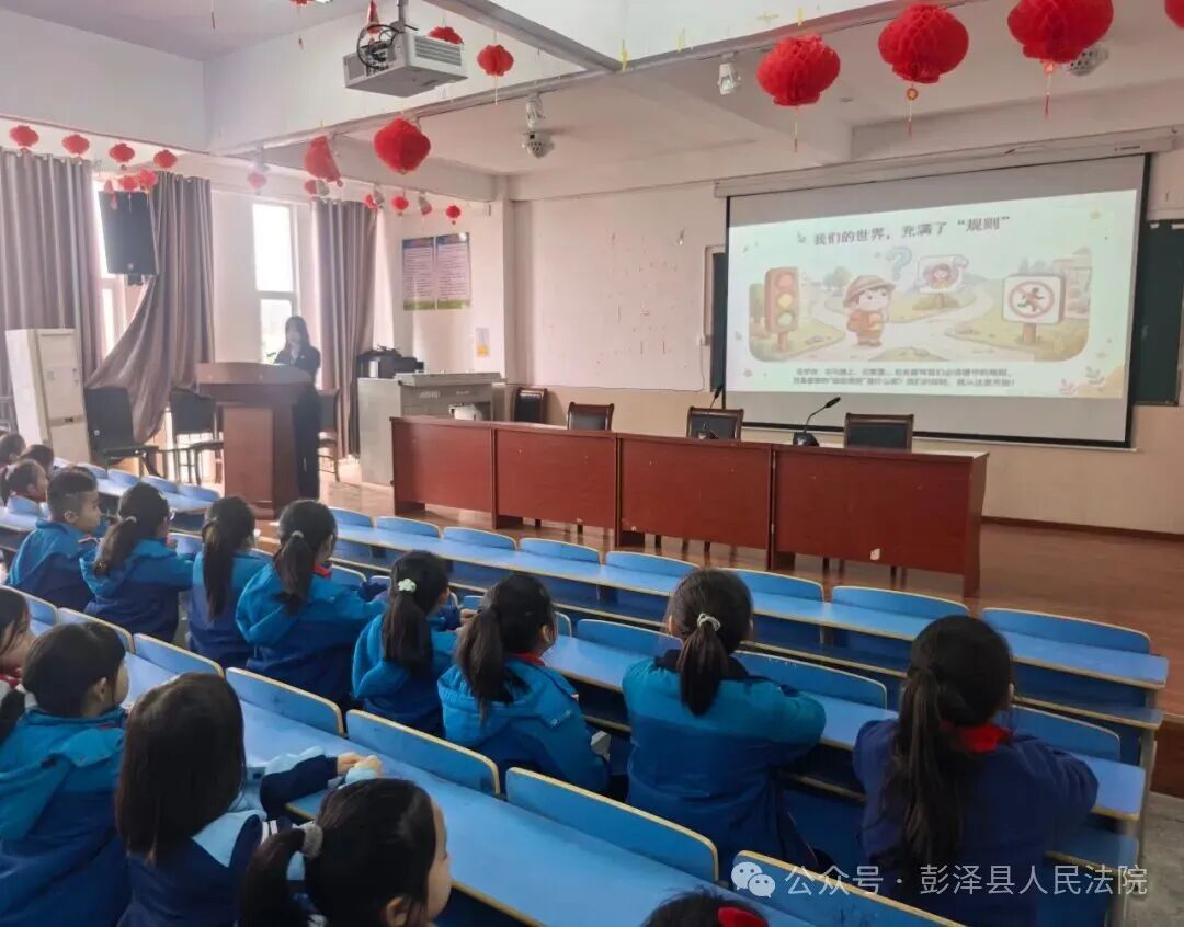 为进一步引导未成年人树立规则意识与法治观念,让尊法学法守法用法的种子在校园生根发芽,3月19日,彭泽县人民法院定山法庭干警——彭湖湾小学法治副校长走进校园,为同学们带来一堂生动有趣的法治启蒙课。
