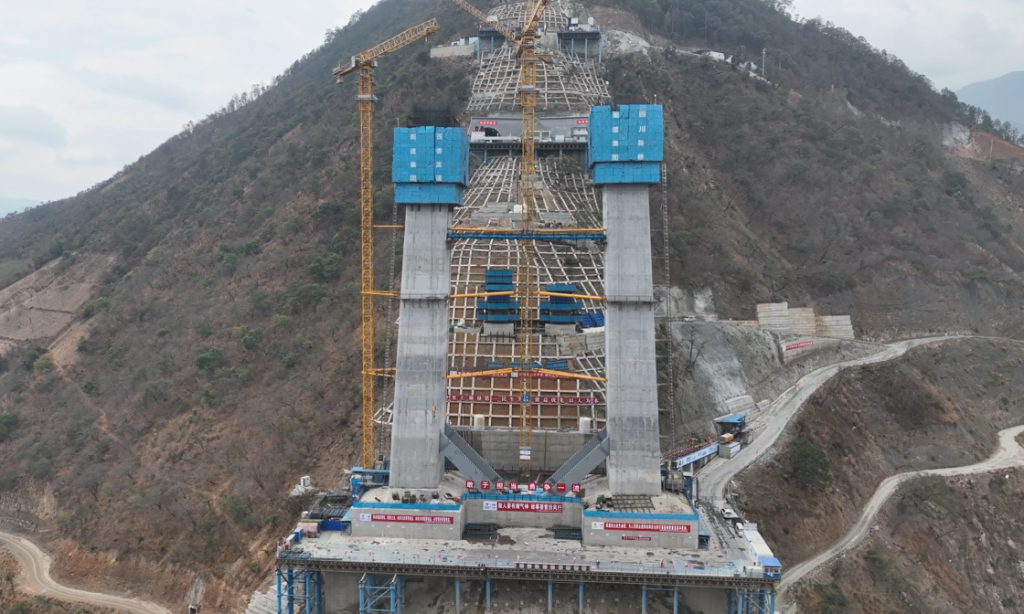 近日,在西香高速雅砻江特大桥施工现场,大桥两岸施工点位同步作业、高效推进,全力冲刺关键节点建设目标。陈娜 邱庭 毛海洋 摄