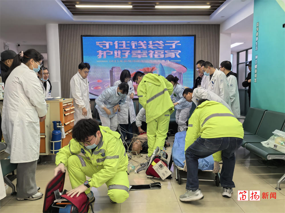 没有片刻迟疑,急救预案随即启动。医护人员就地跪下,开始持续有效的胸外按压,与此同时,院内抢救团队与120急救小组火速响应。短短数十秒内,除颤仪、急救药品迅速到位,荧光绿的急救服与白大褂在门诊大厅穿梭交汇,一场与死神的赛跑就此展开。