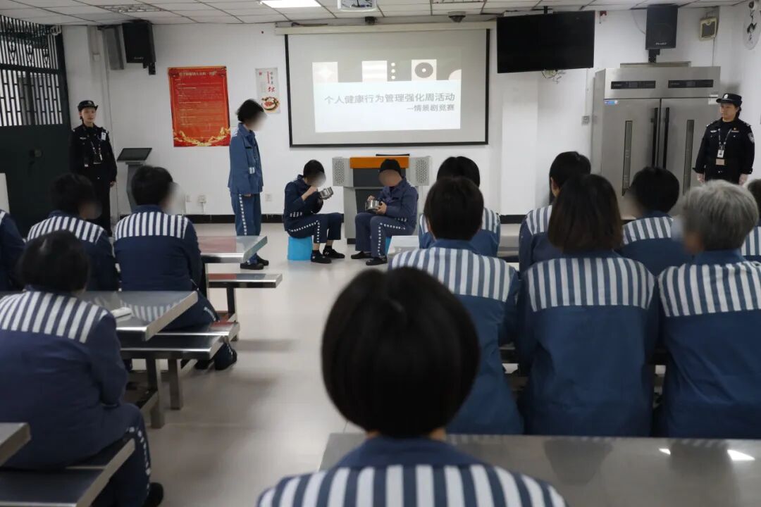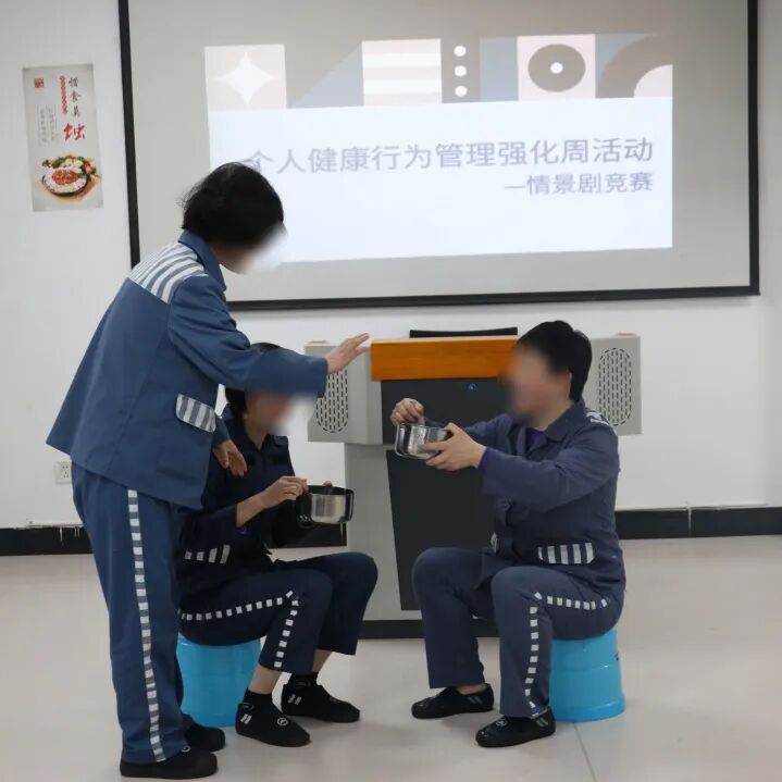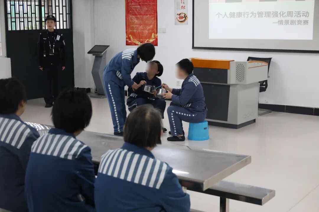 防护主题情景剧现场,罪犯自编自演结核病防治剧目,紧扣日常防疫实际,直观演绎结核病传播风险、规范防护要点及忽视防护可能造成的危害,情节生动有趣、贴近实际。