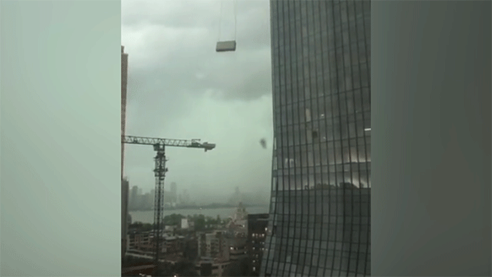 一户外作业吊篮被吹起摆动