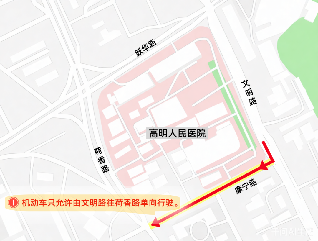 单行路段:康宁路(文明路至荷香路段)