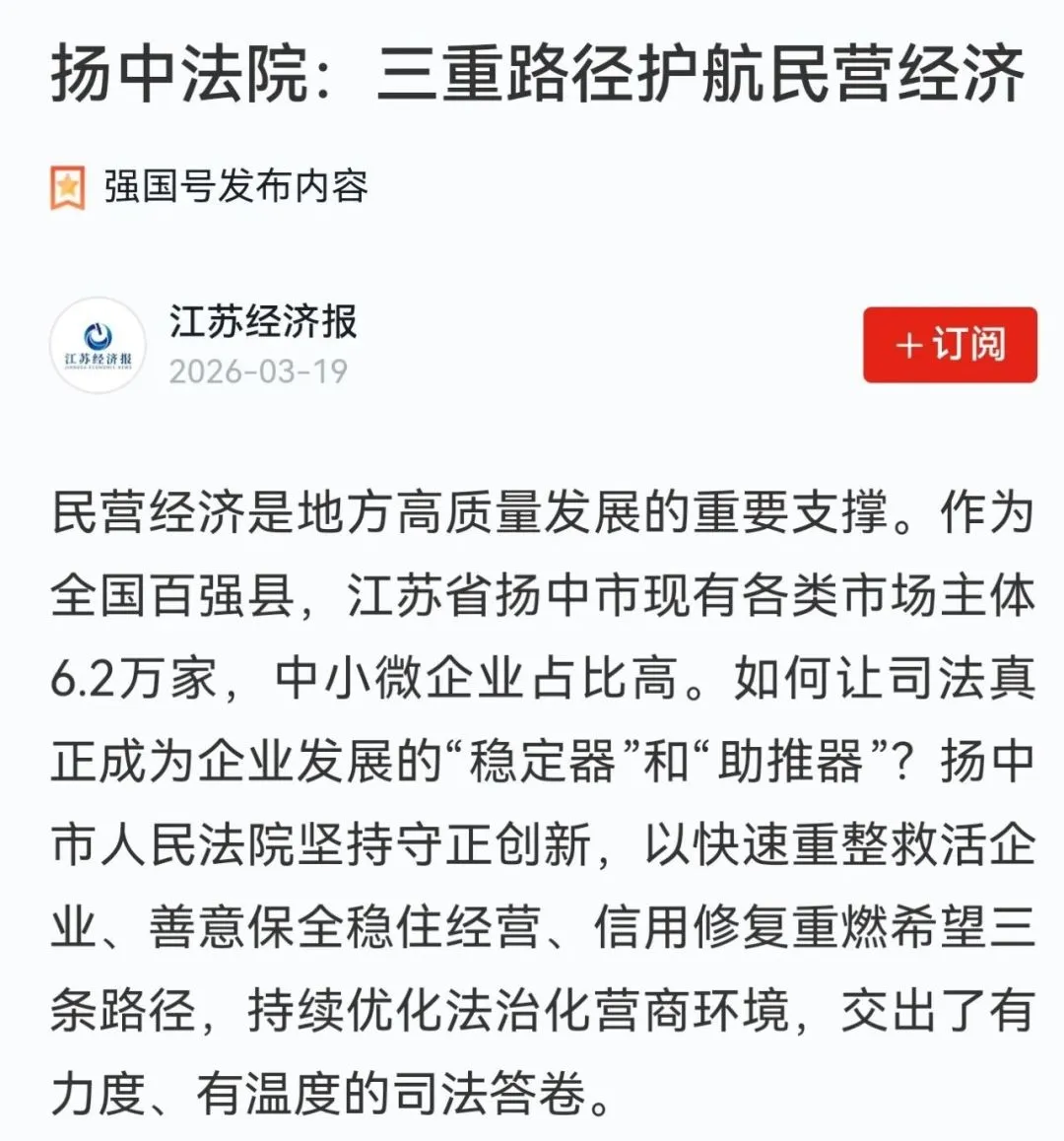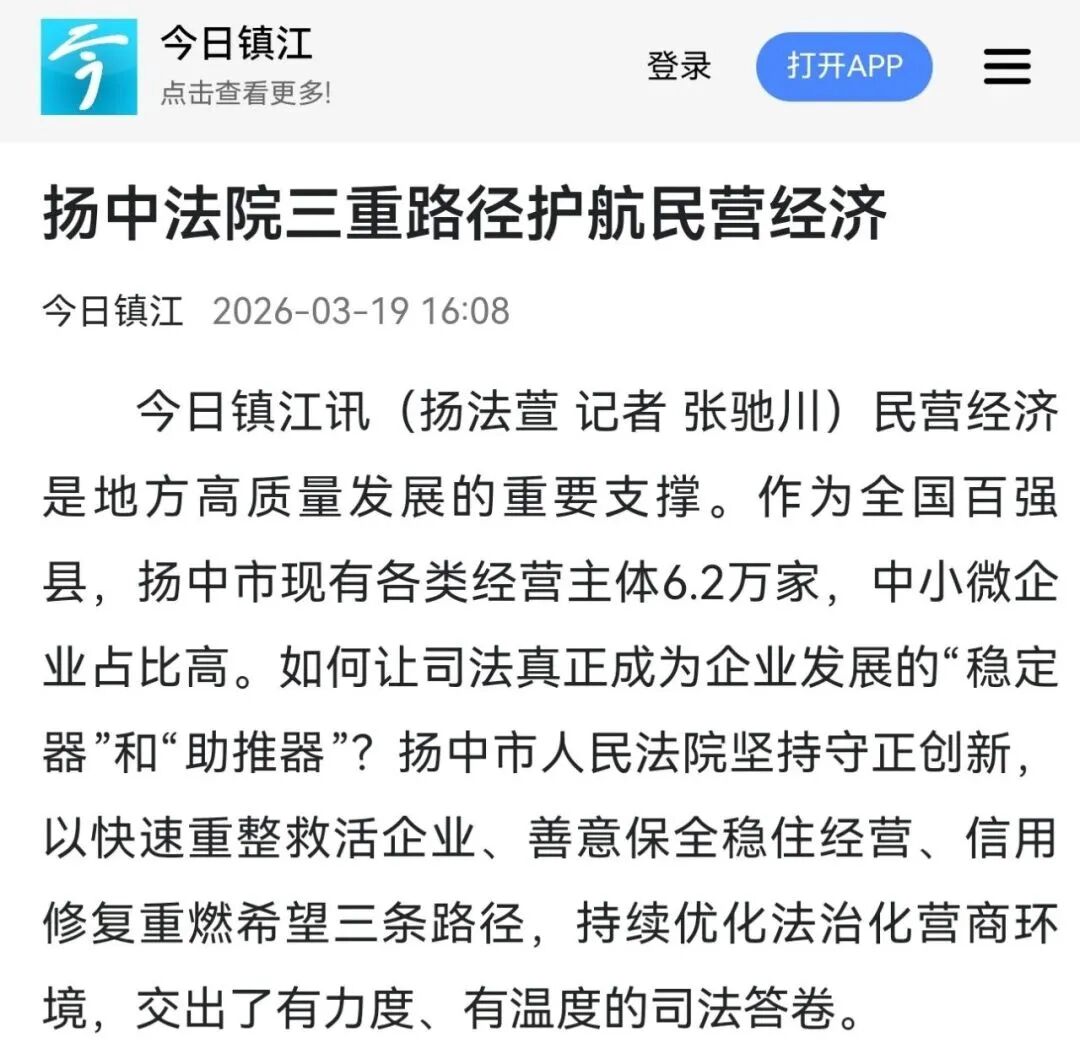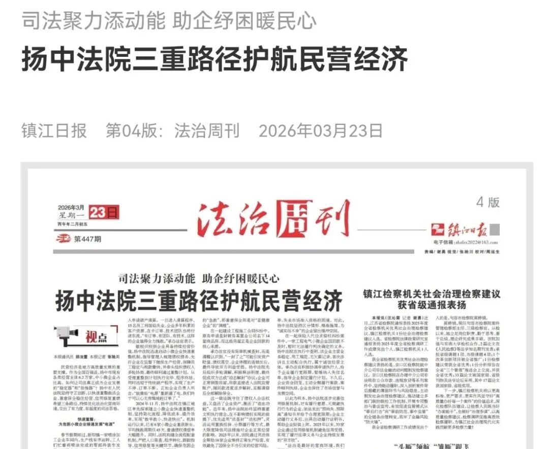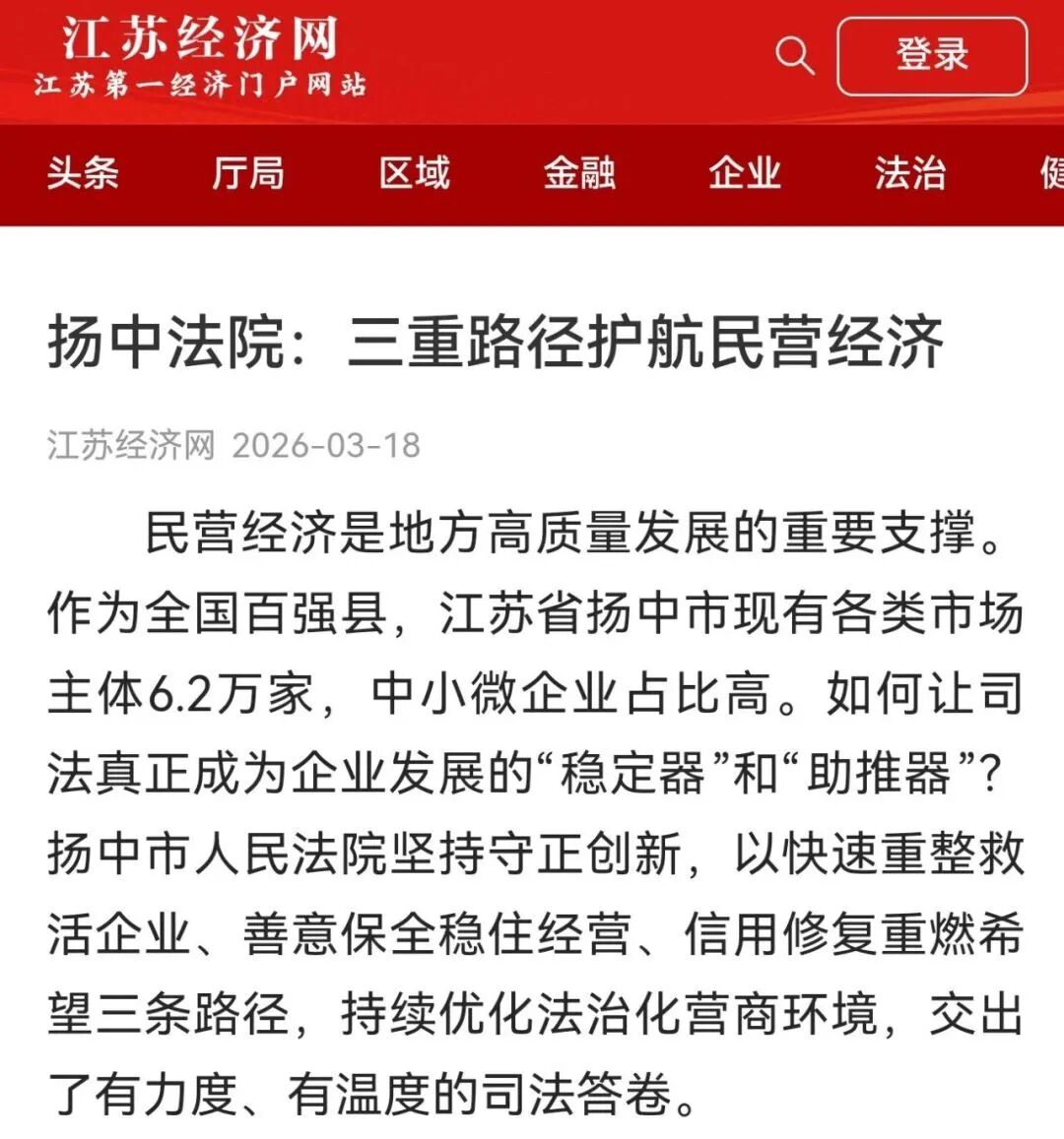 媒体播报|扬中法院:三重路径护航民营经济发展