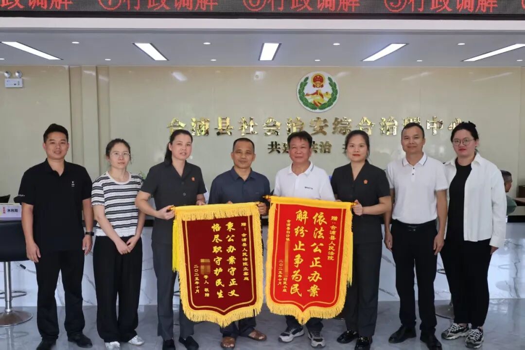 2025年7月,旅居日本的李先生专程飞回合浦,将锦旗交到主办法官手中。