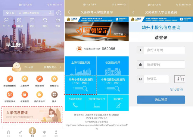 待报名系统开通后,家长可登录“随申办市民云”APP,点击首页的“入学信息查询”服务,点击“幼升小报名信息查询”,即可在线查询孩子的入学报名信息。
