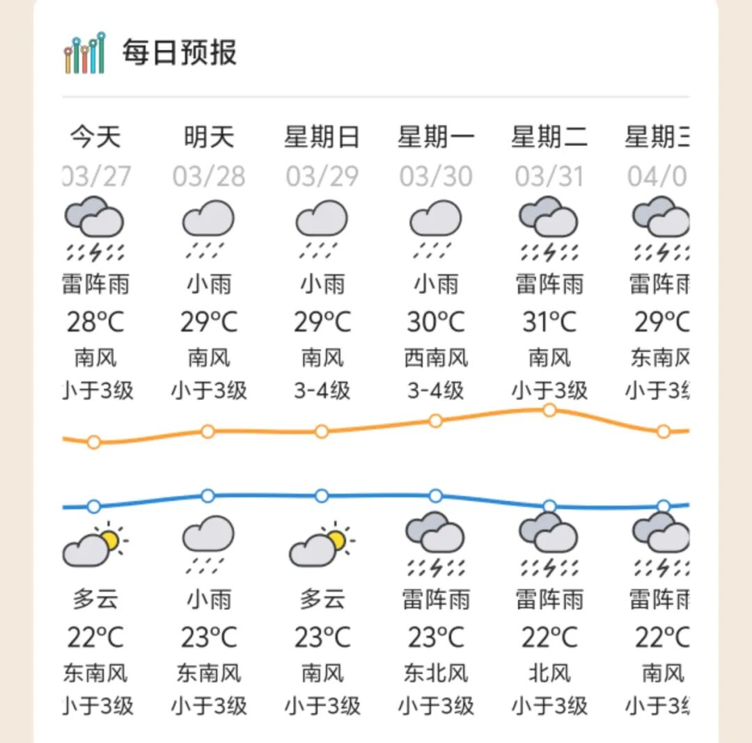 3月28日多云,局部有阵雨;