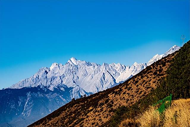 在云南省丽江市玉龙纳西族自治县,玉龙雪山巍峨耸立,风光壮美。