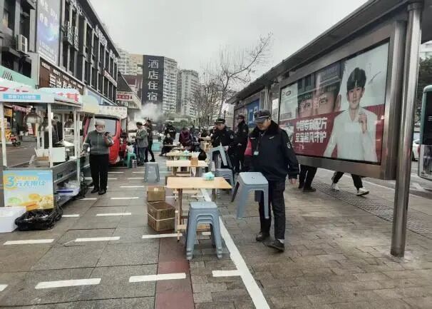 西南医院周边人流密集,便民需求与占道矛盾突出。沙坪坝区城市管理局摒弃“一刀切”,在金阳易诚沿线打造潮汐摊区,规划79个摊位,分早中晚三时段规范经营。摊贩定点定时、线内经营、自备垃圾容器,既解决占道扰民、交通拥堵问题,又保障商贩生计、满足市民便民需求,实现市容有序、民生兜底、烟火暖心三方共赢。