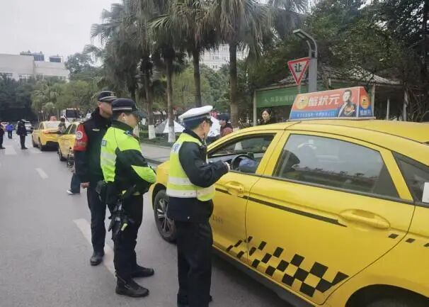 区城管执法支队联动交管支队查处占道出租车等乱象。