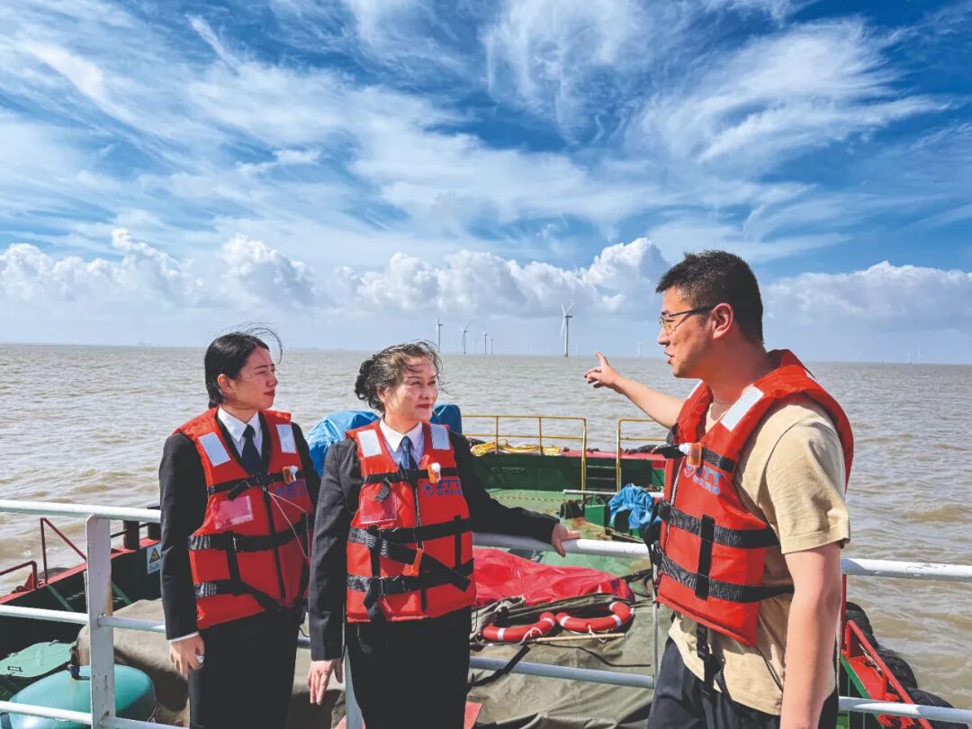 >>承办法官及团队成员来到如东县洋口港,登船赴如东海上风电场,对船舶租用合同案件进行回访。 受访单位供图