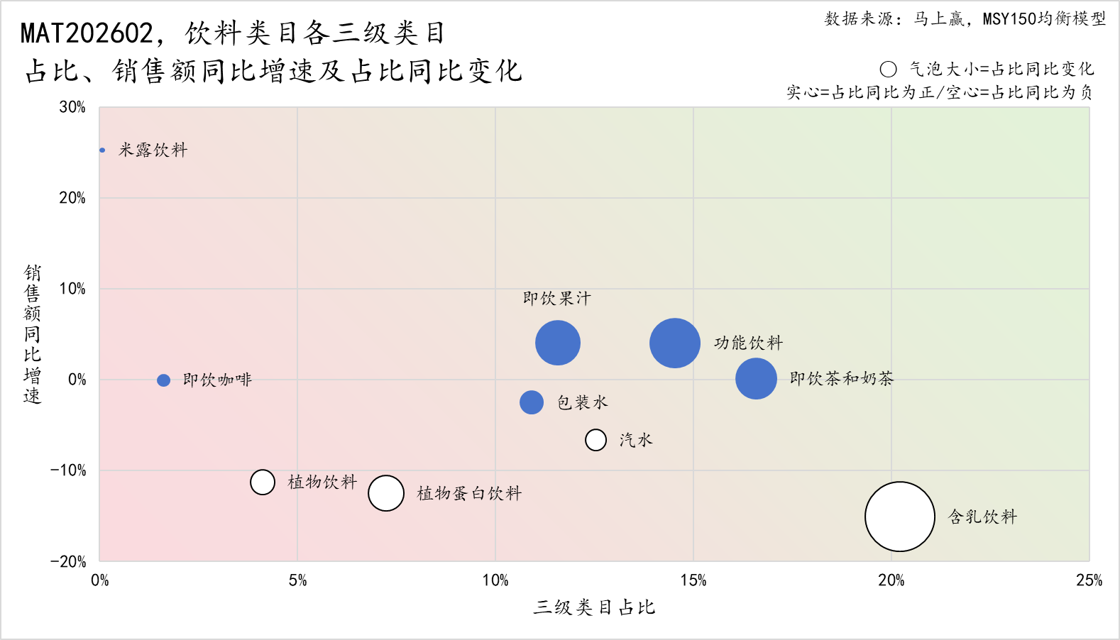 「春糖」的“老炮聚会”与「创造营」的“新声夺人”,共同将今年饮料行业热点与趋势的探讨引向了高潮。本周,马上赢情报站将基于过去一年中各个饮料主要类目的发展情况,为您带来2026年饮料市场的热点及趋势前瞻。