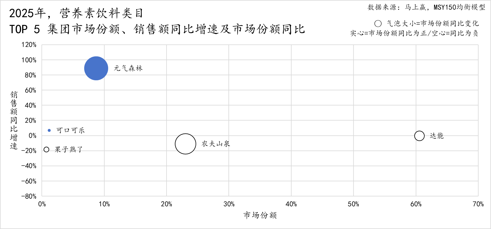 一直以来较为传统、份额占比相对稳定的营养素饮料,在2025年随着元气森林维B水、维C水的走红,也迎来了一些新气象。