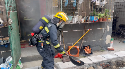 消防员迅速关闭燃气