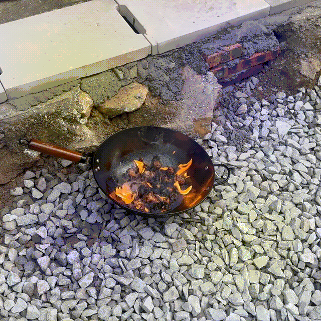 消防员将燃烧中的锅具转移。图源:江西消防