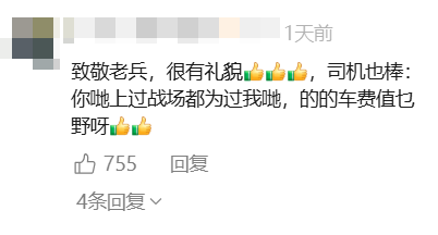3月17日19时许,广州出租车司机吕伟斌遇到一名老人在路边求助。老人表示探望战友返程时,忘记携带手机与现金。吕伟斌当即爽快表示,就算没钱也会送老人回去。交谈中得知,老人曾上过战场、保家卫国,吕伟斌说道:“你都为我们上过战场,这一点点车费算什么。”
